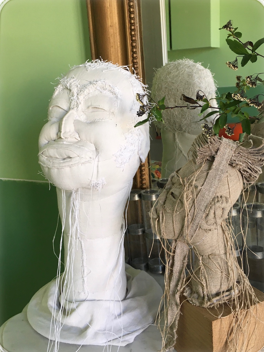 Ambiance art brut, portraits en sculptures textiles
