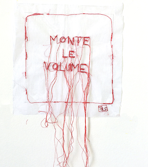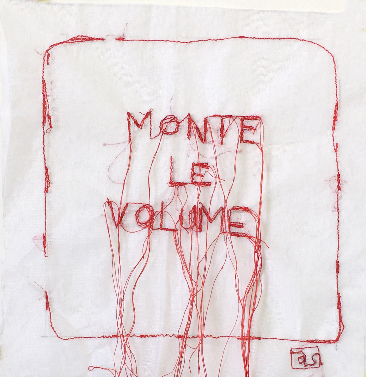 Avec cette broderie invitation à la conscience « Monte le volume » , je nous propose de regarder avec bienveillance, les domaines dans lesquelles nous nous diminuons. En effet, j’ai observé que souvent, chacun de nous peut faire taire ou enfouir certaines capacités que nous avons. Et nous le faisons car nous ne tenons compte que des jugements des autres ou de nous même. Vous êtes vous vous aussi couper d’une partie de qui vous êtes pour répondre à des attentes ou des critères? Et cela revient à s’amputer de membres pour entrer dans une boite trop petite. Ainsi, cette invitation en forme de goutte de conscience, nous suggère d’avoir conscience de nos capacités et de les exploiter en dépit de jugements. A chaque fois que nous sommes tentés de baisser le volume lorsque quelqu’un nous le suggère, ce mémo est là pour au contraire nous inciter à le monter!