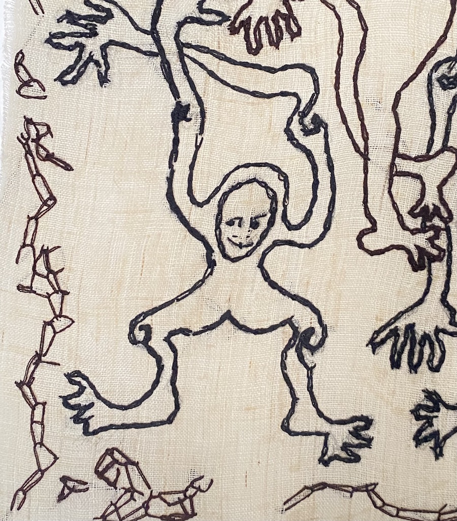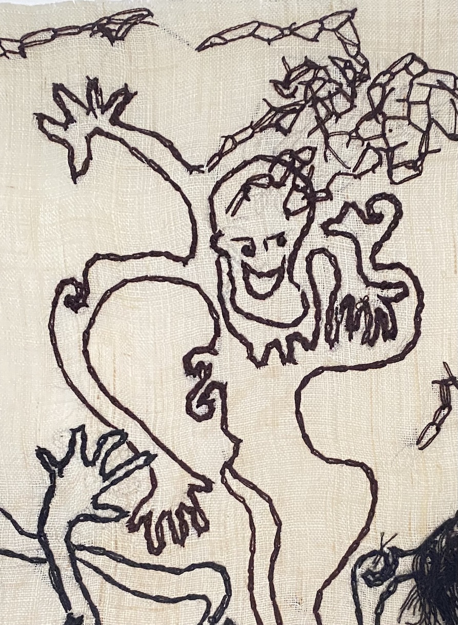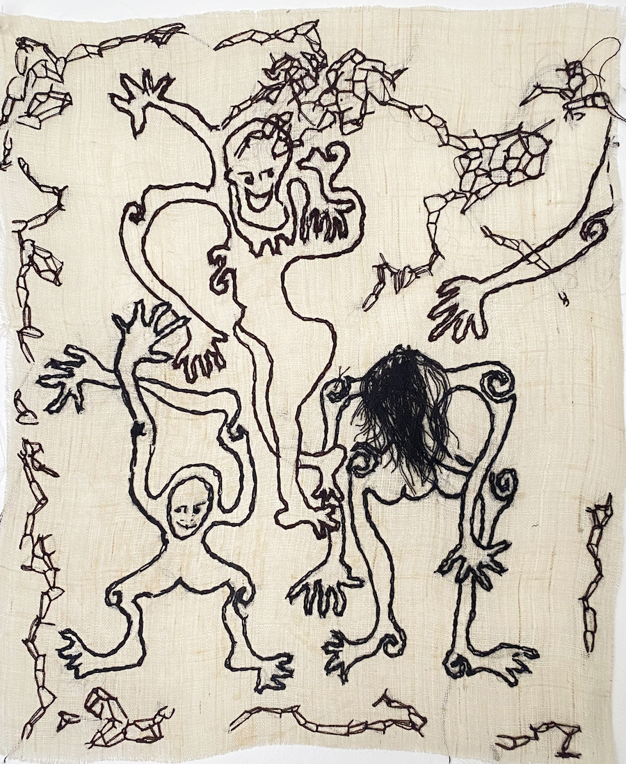 - Étiquettes: Art brut, art textile, broderie main , fil de laine, tissage, fibre illustration, graphisme, art brut, bananier, abaca, danseurs.