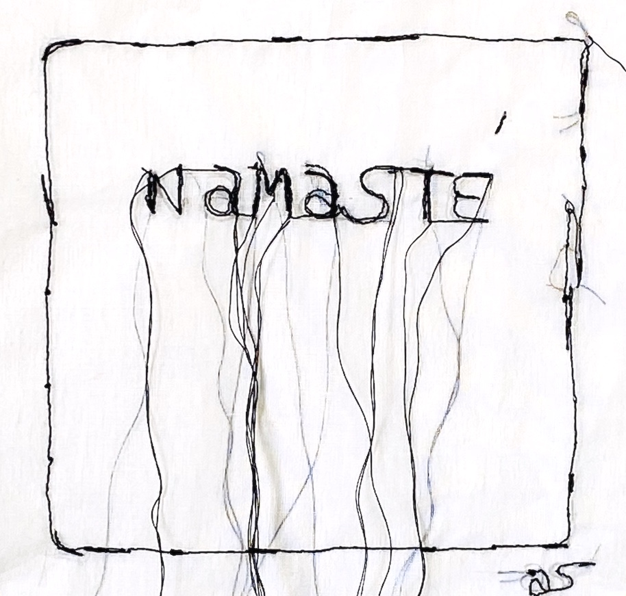 Invitation à reconnaitre le divin en chacun de nous, broderie 15×15 cm.