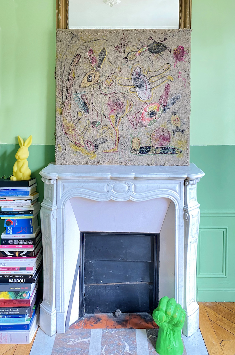 Sur cette toile brodée, art spirituel, je vous invite vous relier à un animal totem. Ainsi, l’esprit du chien, du lapin, du mille pattes, de l’escargot, du faon, du poisson, de l’oiseau, de l’insecte, nous propose de nous inspirer de sa puissance de vie, ses forces, de ses comportements. Un art spirituel pour qui désire accéder chaque jour à une meilleure version de soi, art figuratif ; Cette tenture brodée peut être montée sur châssis, ou bien tendue sur le mur. Dans tous les cas, j’ai conçu cette oeuvre brodée et spirituelle de façon à ce que l’on l’appréhende dans le sens de l’animal choisi à un moment donné!