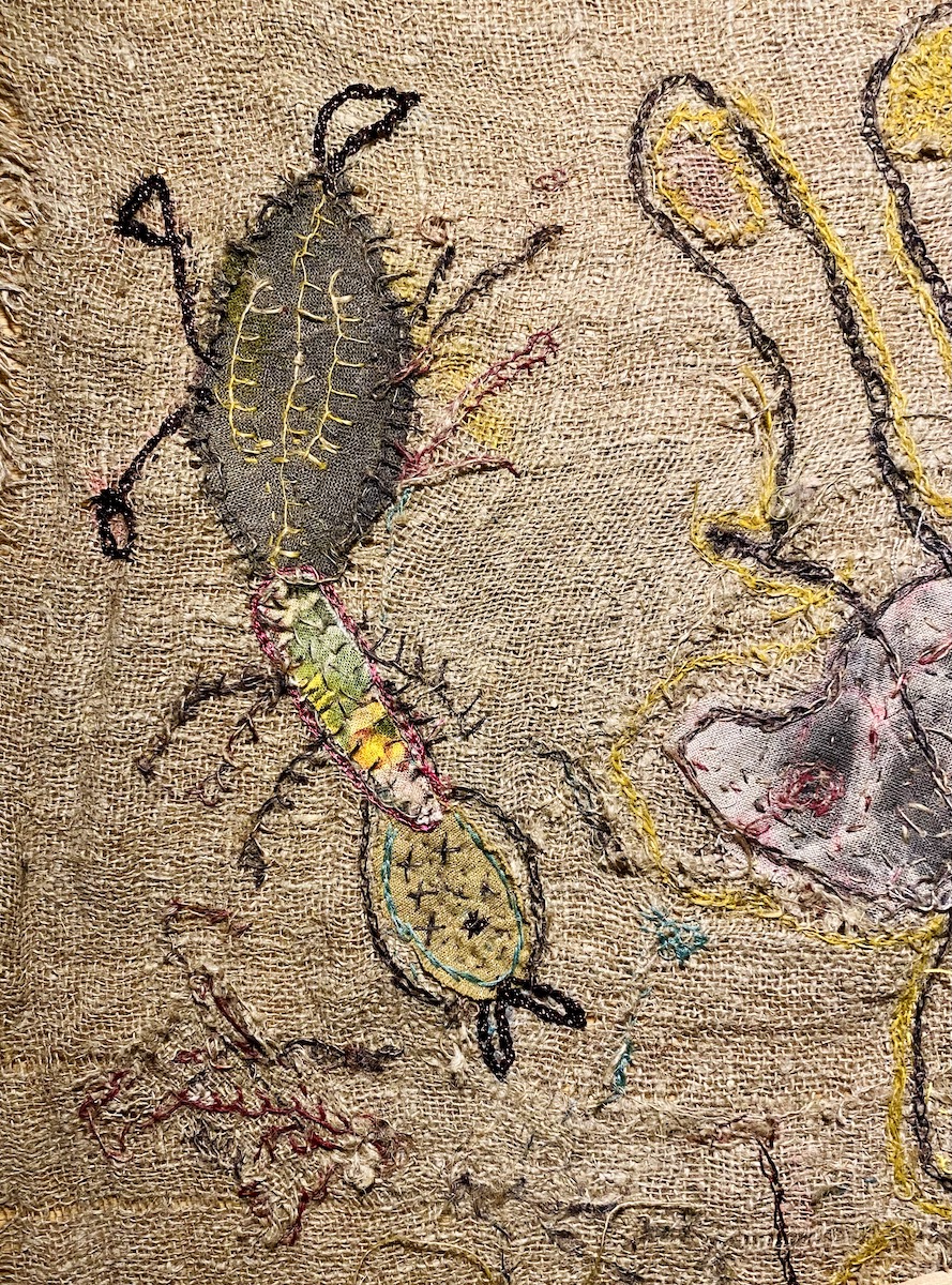 Cette oeuvre, est entièrement brodée. Chaque centimètre est recouvert de points de broderies.
