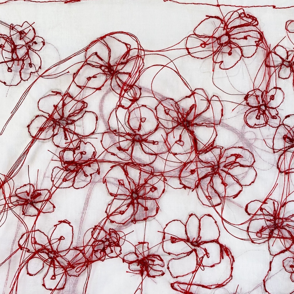 - Étiquettes: fleurs, Sakura, broderie fil, rouge, organdi blanc, portrait.