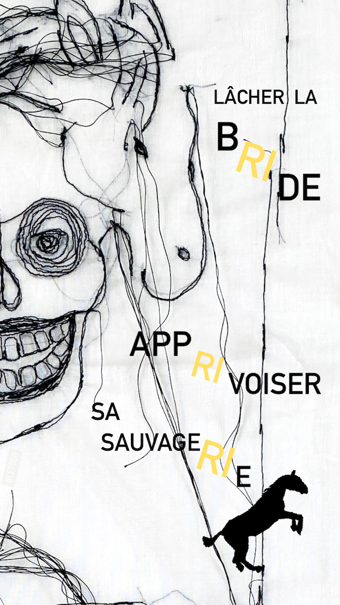 Vanité n°34, entité joyeuse, broderie sur organdi, 25×26 cm, 190 €, broderie « Lâcher la bride et apprivoiser sa sauvagerie », + 40 euros