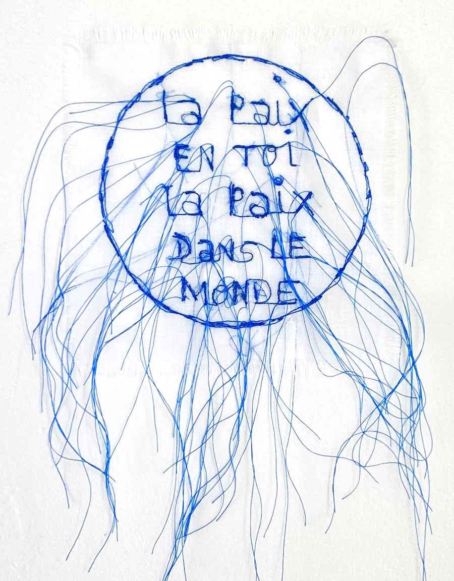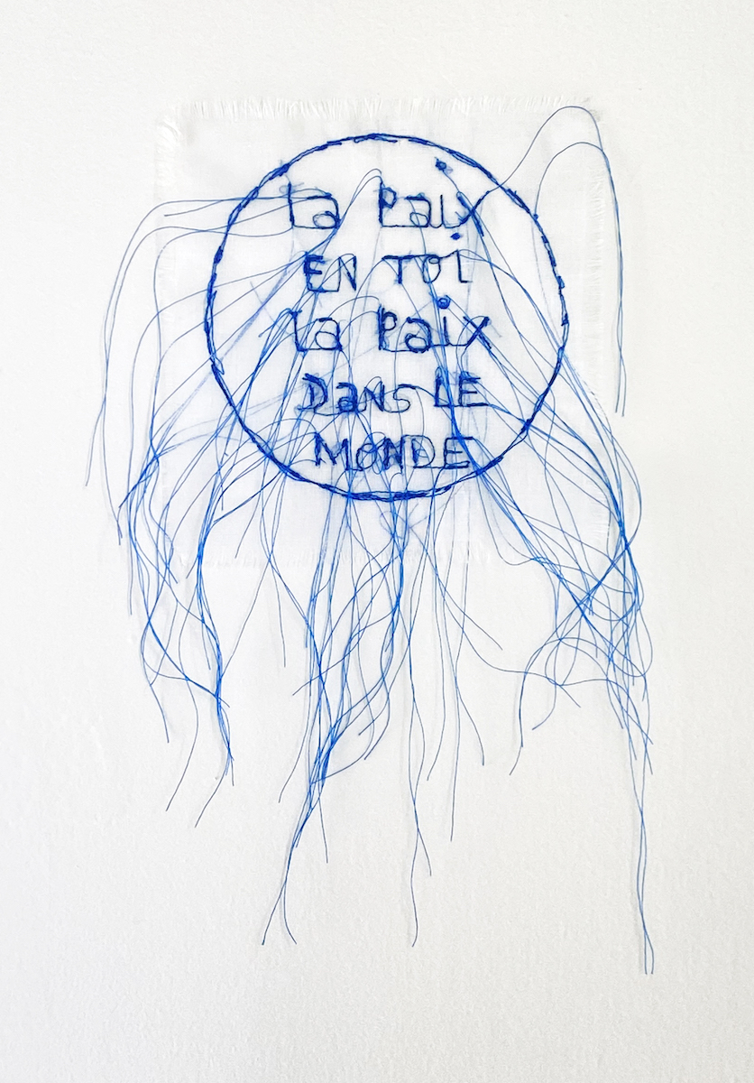 - Étiquettes: Broderie fil, paix, conscience, , invitation, alerte, fil bleu, mémo, organdi blanc, paix.
