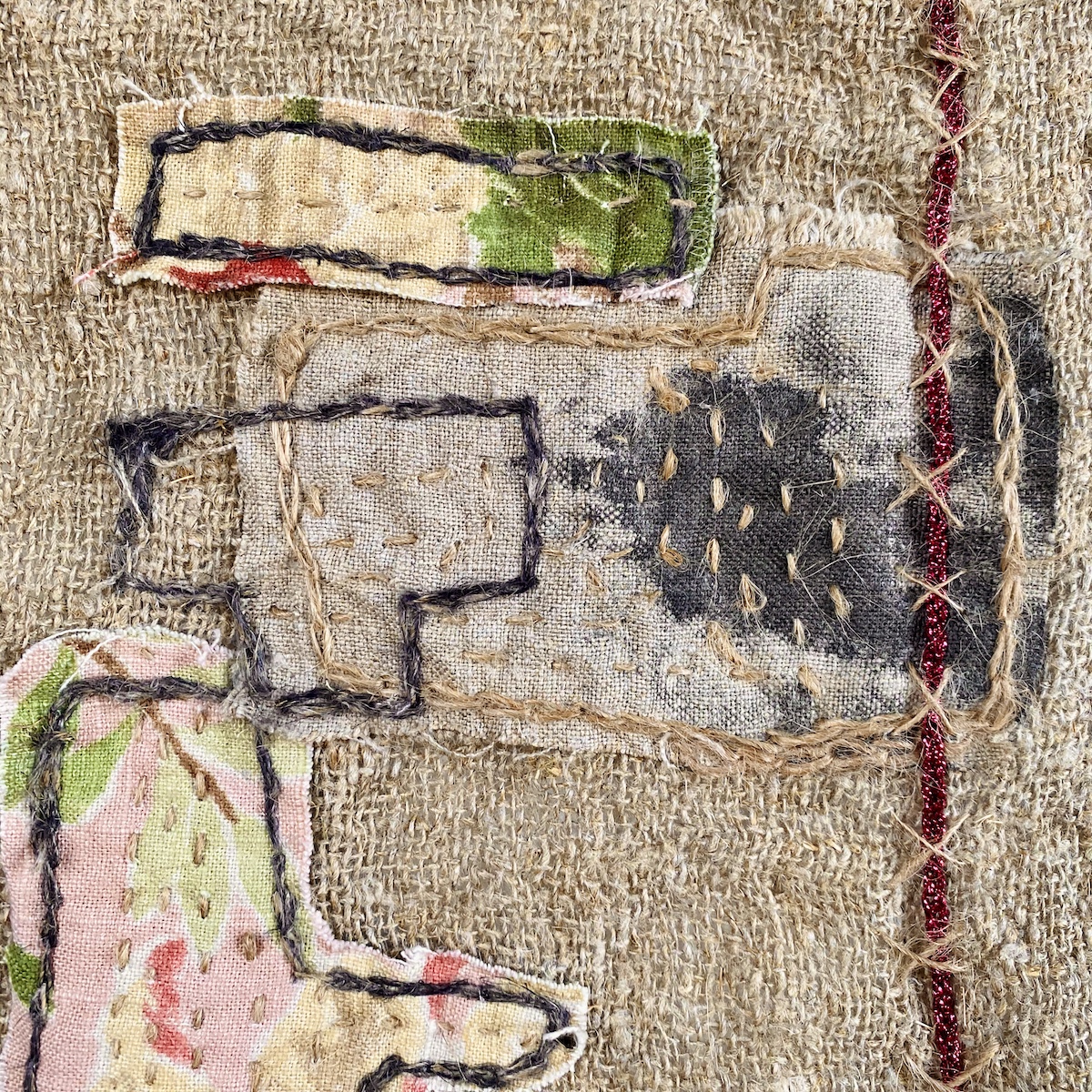art textile, jute recyclée, broderie main, 28×44 cm, 150 €