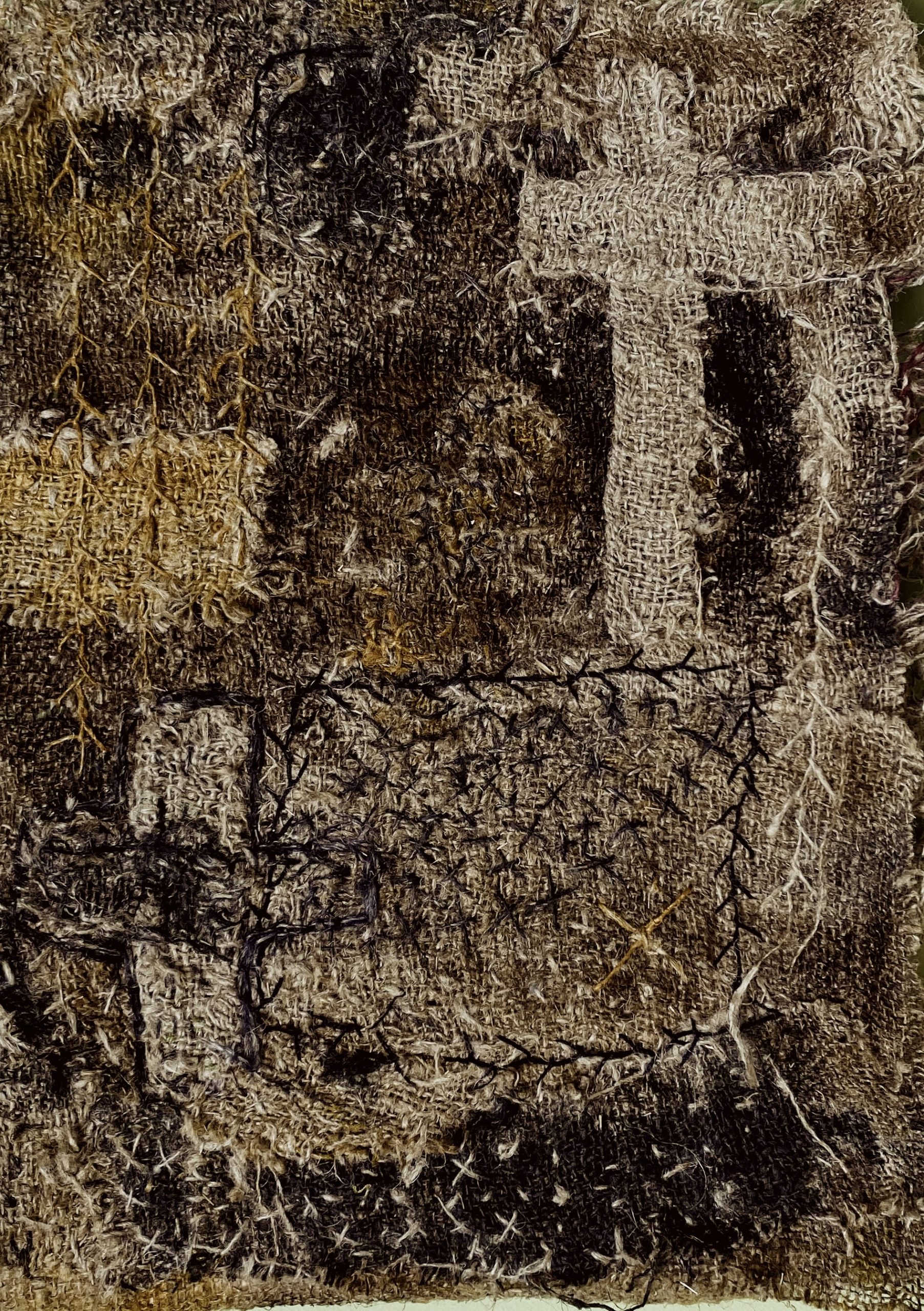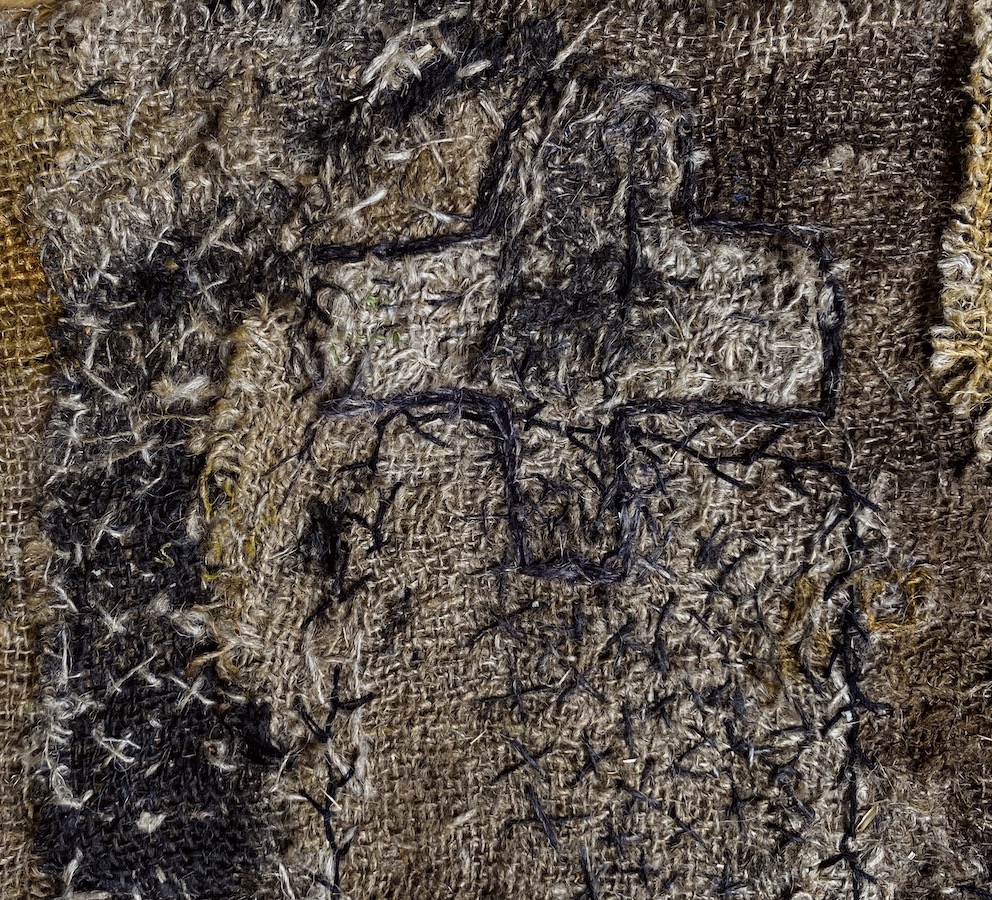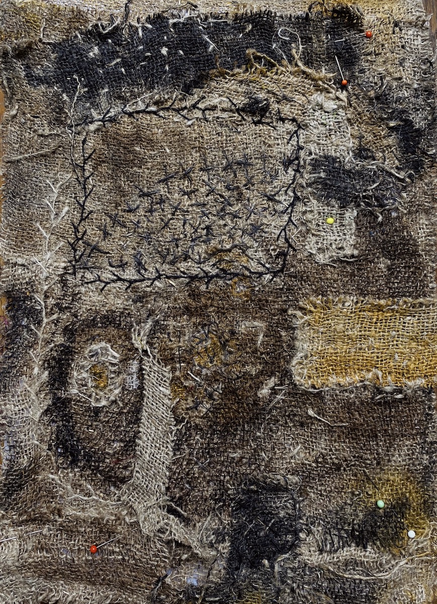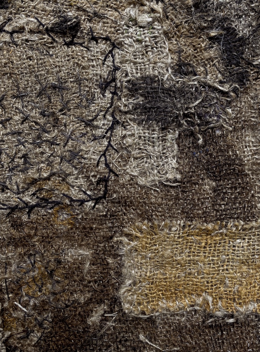 - Étiquettes: Art brut, broderie main, sashiko, jute recyclée, fil de jute, tapisserie, wabisabiart.