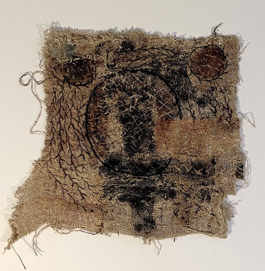 - Étiquettes: Art brut, art spirituel, broderie main, jute recyclée, fil de jute, tapisserie.