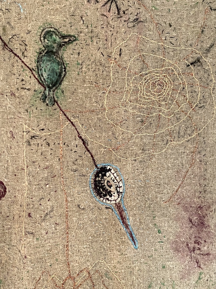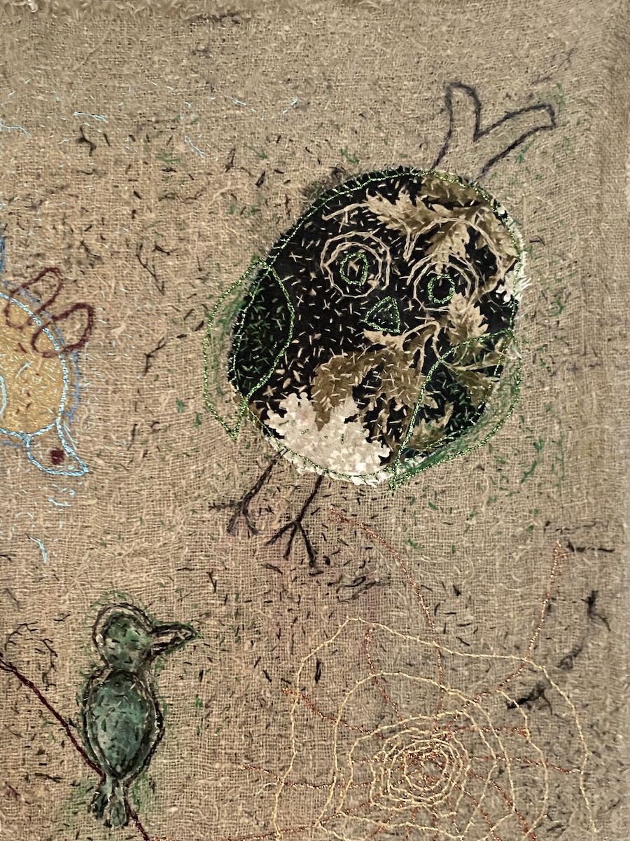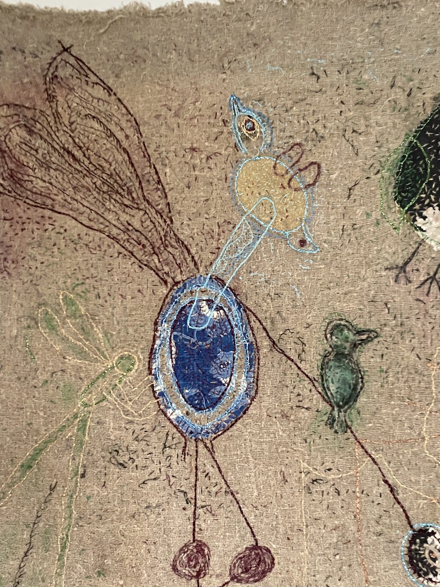 - Étiquettes: Art brut, art spirituel, broderie main, tissus recyclés, sashiko, tapisserie, fil de jute.
